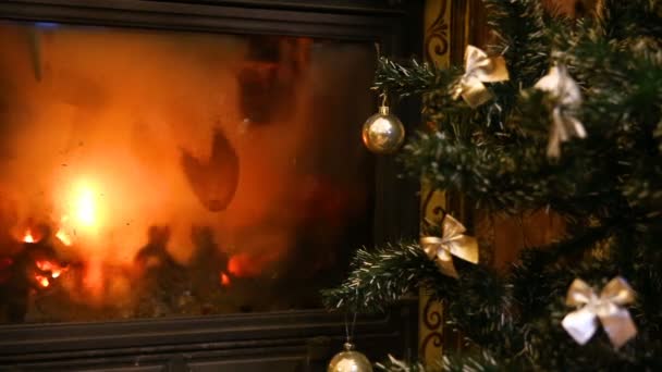 Fireplace Living Room Christmas Tree Fire Burning Fireplace Stock Video C Aksakal 333621616